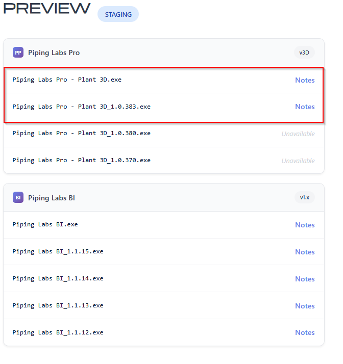 The builds for your downloads are available at https://pipinglabs.com/builds/. This page lists testing (visible to internal only), preview, and production builds.