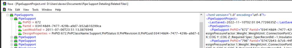 To exchange data, we developed a custom xml format that will contain information about our pipe support and how it’s managed in the Plant 3D database. This will act as a standard place we can use to interact with the project data from Inventor without having to actually post changes to a database. Instead we’ll be able to queue the changes up and notify designers when actions need to happen.